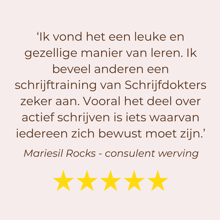 - Leer niet alleen van de schrijfdokters, maar ook van elkaar